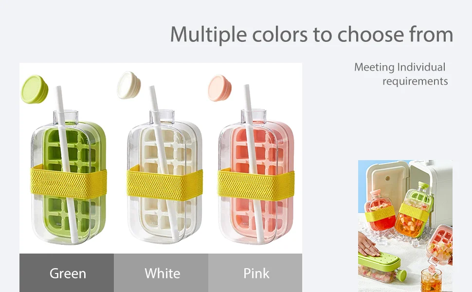 Ice cube Maker Jar Ice Cube Tray With Straw 2 in 1 Ice Tray And Water Bottle For Ice Maker Silicone Ice Cube Portable Kettle Reusable Ice Cup